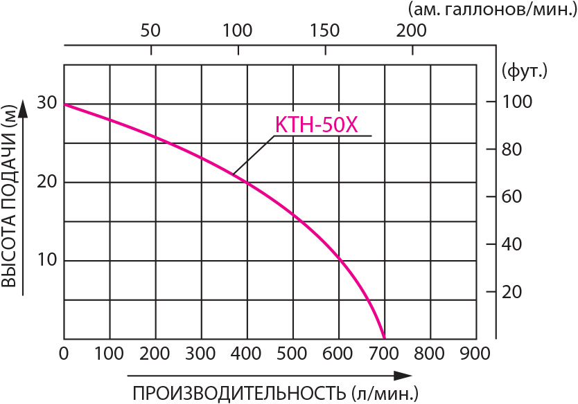 Кривая рабочих характеристик мотопомпы Koshin KTH-50X